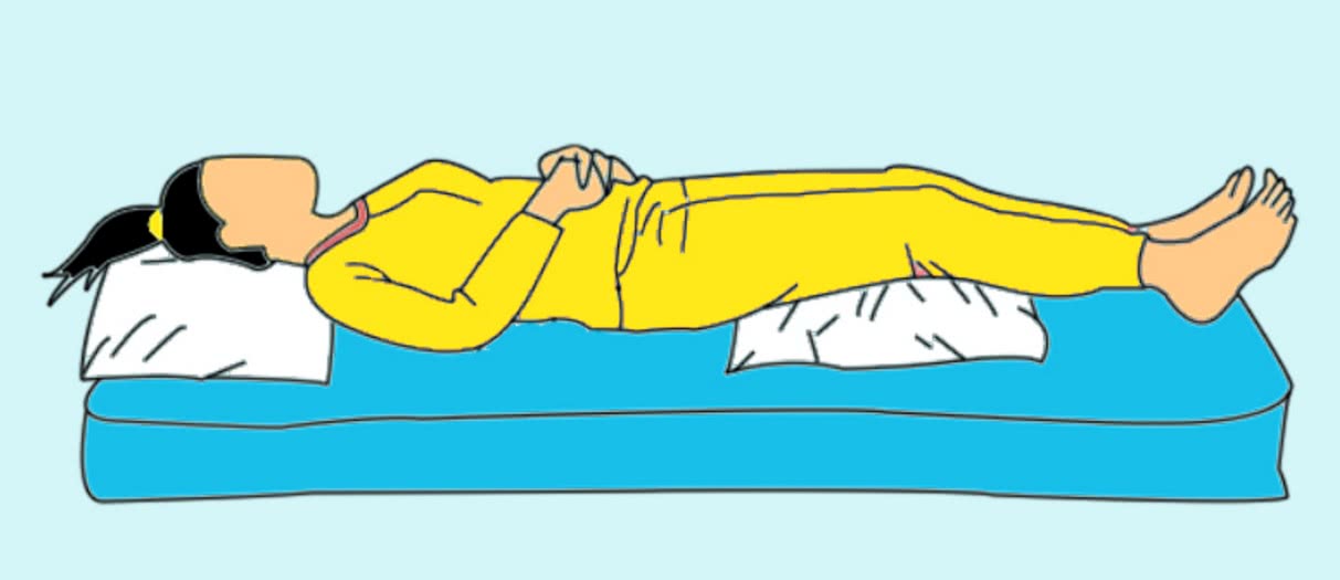 如果您腰椎间盘突出,也可以考虑平躺这个睡姿。膝盖微微弯曲,在小腿部垫一个枕头作为支撑。这个睡姿能减轻下脊柱所承受的压力,而且能让腰突的患者在睡觉时得到康复治疗。