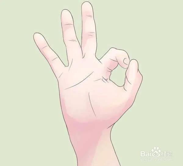 第二步:用两个手指拼成如图的O型,常用大拇指与食指拼成OK姿势,当然你可以用任意两个手指。
