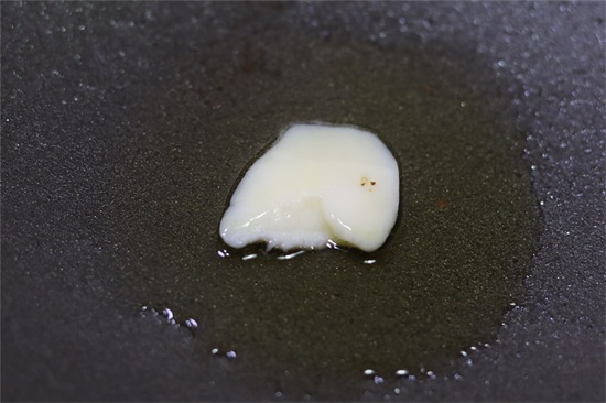 2、锅中少许食用油,加入一半的猪油,烧热融化。