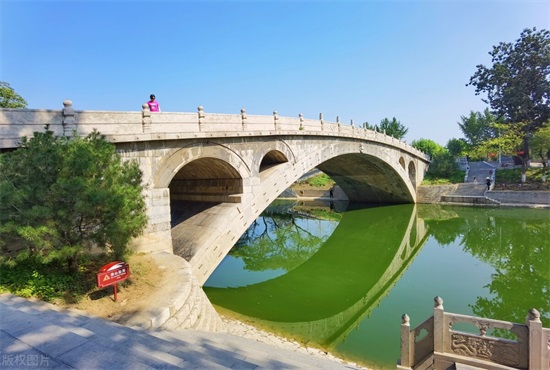 景区内除了有闻名中外的赵州桥,还有极具隋唐风格的亭台楼阁,碧草如茵,风景秀丽。
