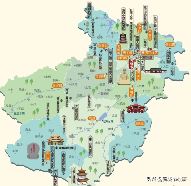 洛阳下辖县市,为了方便了解洛阳城镇布局结构,我按照河流的方向顺序排列,部分图比例有调整。