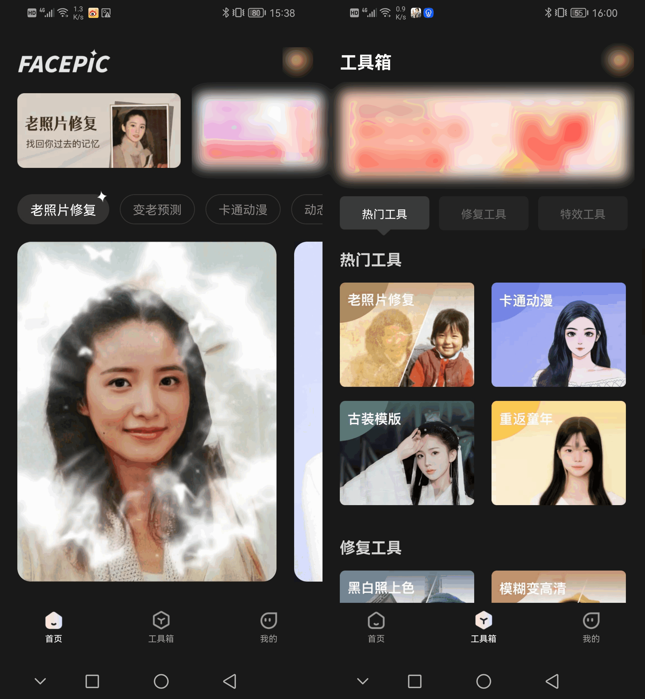 这是一款主打图片滤镜特效以及图片编辑处理的软件。它拥有老照片修复、艺术人脸、古装模板、百变发型等多种特效。还有这款软件里面的特效基本都是傻瓜式操作,只需要将图片上传,系统就会自动进行AI智能处理。并且这些特效都支持一键对照片进行套用,方便我们的操作。
