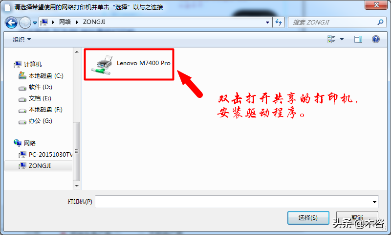 ⑥双击打开共享的打印机,安装驱动程序后完成添加。