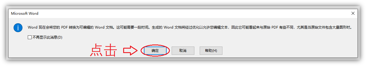 随后自动打开Word文档,界面上会出现一条弹窗提示,直接点击【确定】就行了。