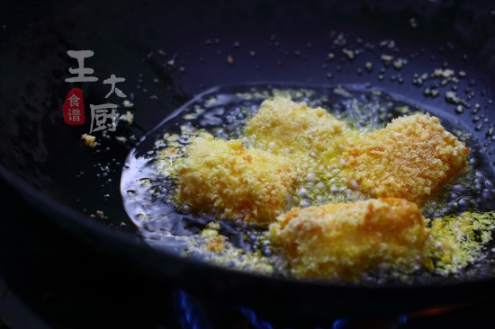 10、起锅烧油,进行煎炸。