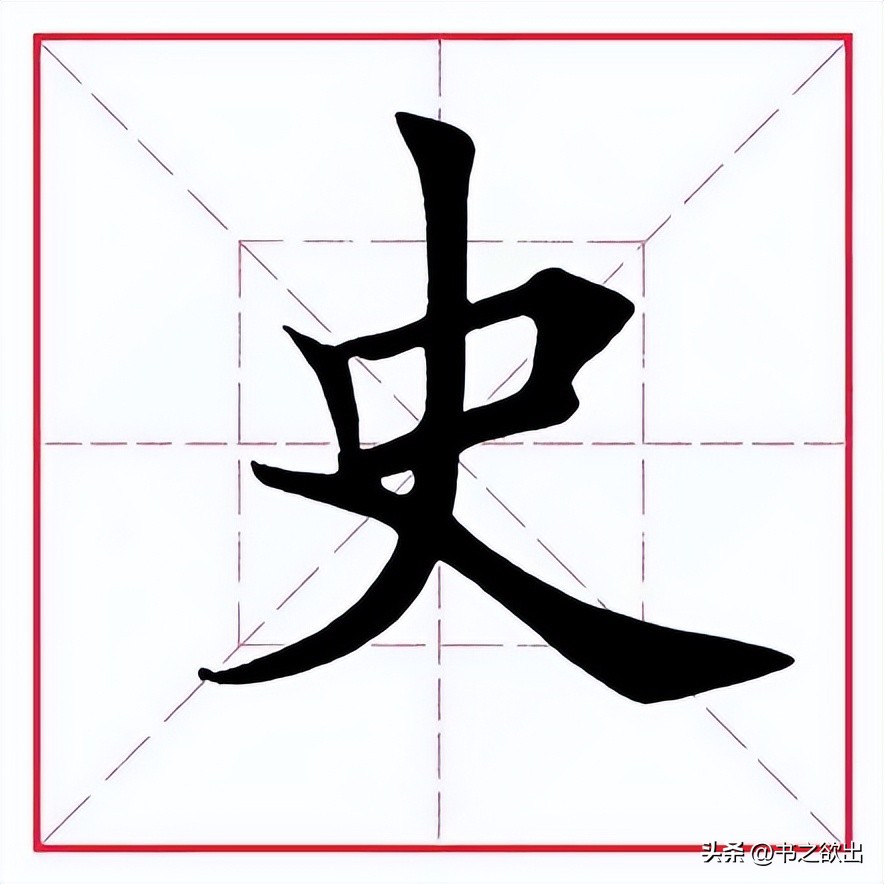 shǐ,会意字,最早见于甲骨文。《说文解字》中注:“记事者也。从又持中。中,正也。凡史之属皆从史。疏士切。” 本义是做事,引申指史官、历史、史籍、文辞等。