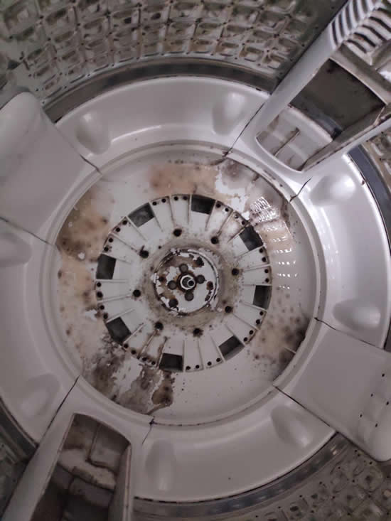不拆不知道,一拆吓一跳,里面太脏了。拆开不难,难的是清洗,波轮底部和钢筒外侧底部都很难清洗,慢慢干吧,三个多小时干完。