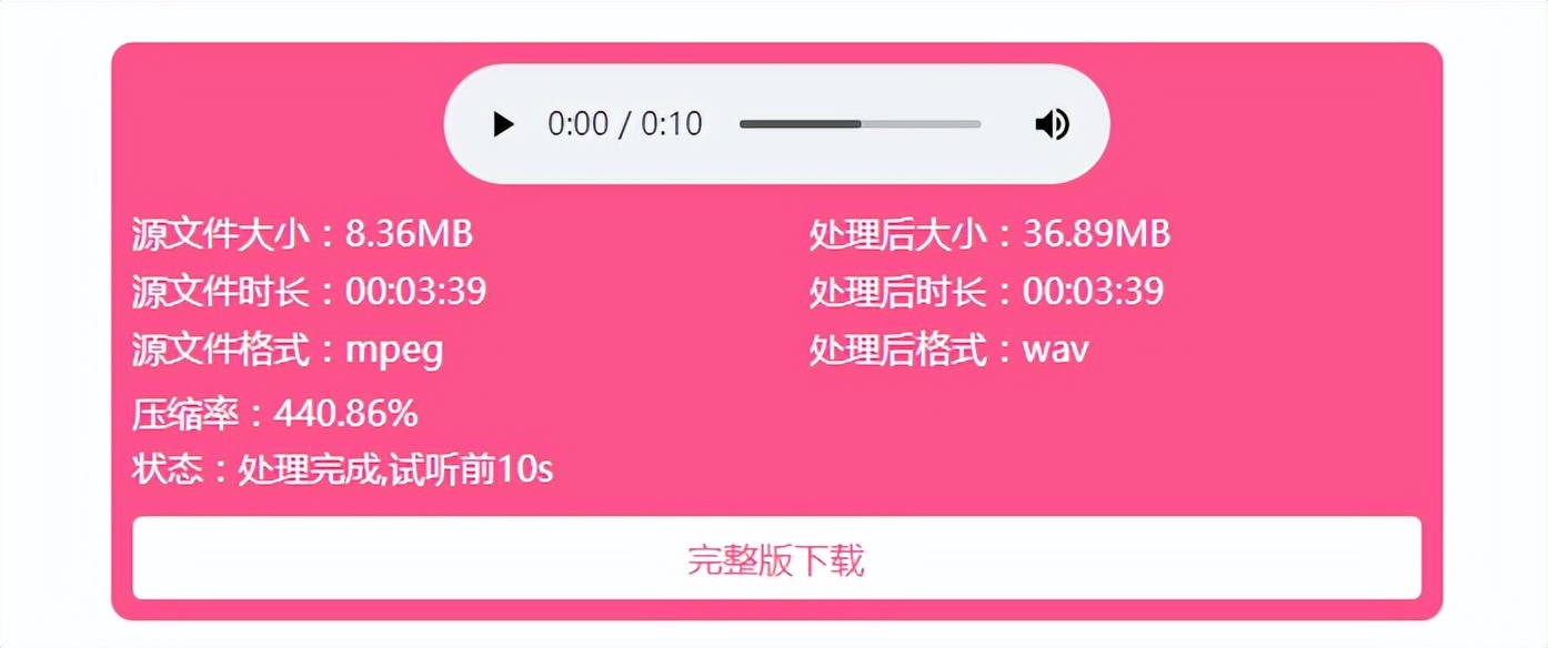 以上就是音频在线转其他格式的操作方法,大家可以利用这款在线音频转格式工具,快速将自己的音频文件转换其他格式,操作简单快捷,还支持音频压缩,音频合成,音频分段等其他功能,有需要的小伙伴也可以体验一下!