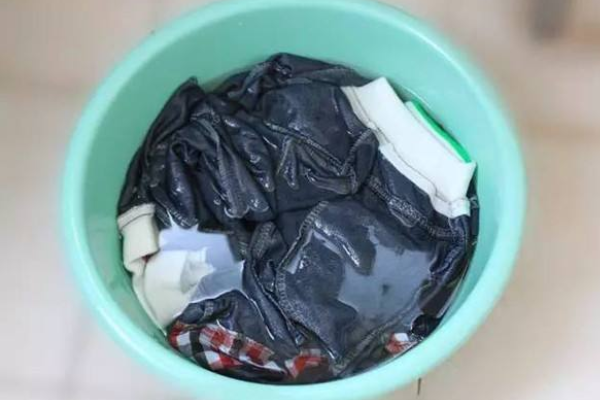 首先准备一盆清水,再在清水里加入适量的盐,用口尝能感觉到盐水发咸即可。再将牛仔裤放入盐水中浸泡10小时左右。