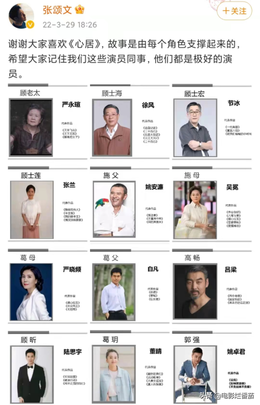 不可否认,《心居》能够成为热播剧,跟演员们贡献的精彩演技脱不开干系。就像张颂文在社交平台上说的那样——