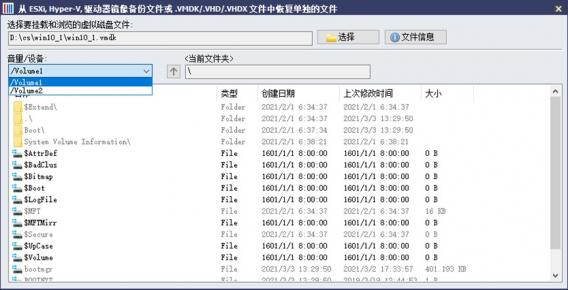 4.VMDK(或.IBD)文件的内容就会显示出来,用户可以从其中包含的多个卷中进行选择,查看其中的内容: