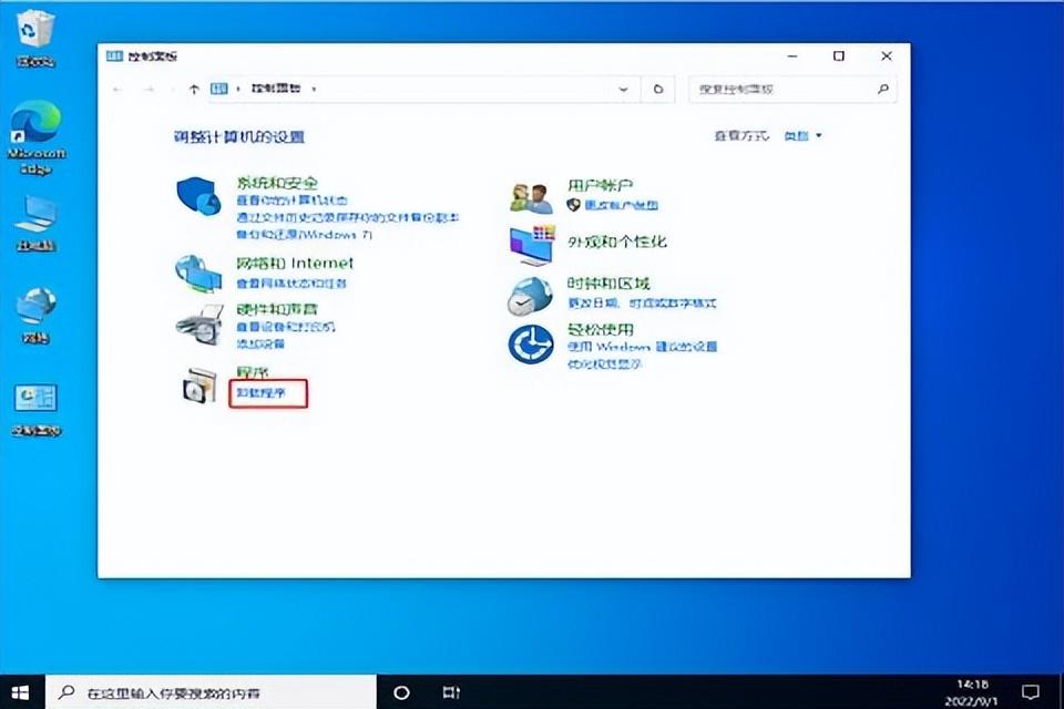 1.首先打开桌面上的的“控制面板",点击“卸载程序”按钮;