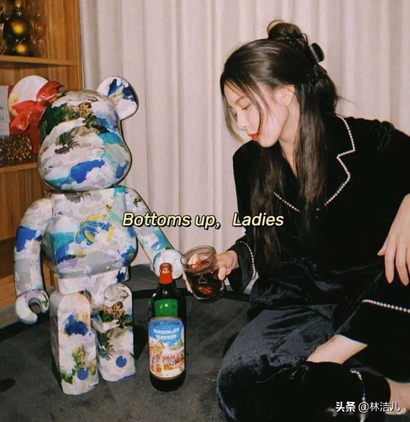 宋妍霏也是鲨鱼夹的忠实粉丝,在家和玩偶熊喝酒(听起来有点心酸),夹着黑色大鲨鱼夹,搭配一身黑睡衣,居家风也有满满时尚感。