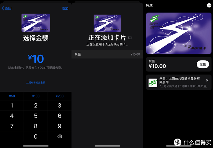这里楼主选择了上海的交通卡, 然后通过从其他银行卡中扣款支付了30元钱,此时公交卡添加完成。