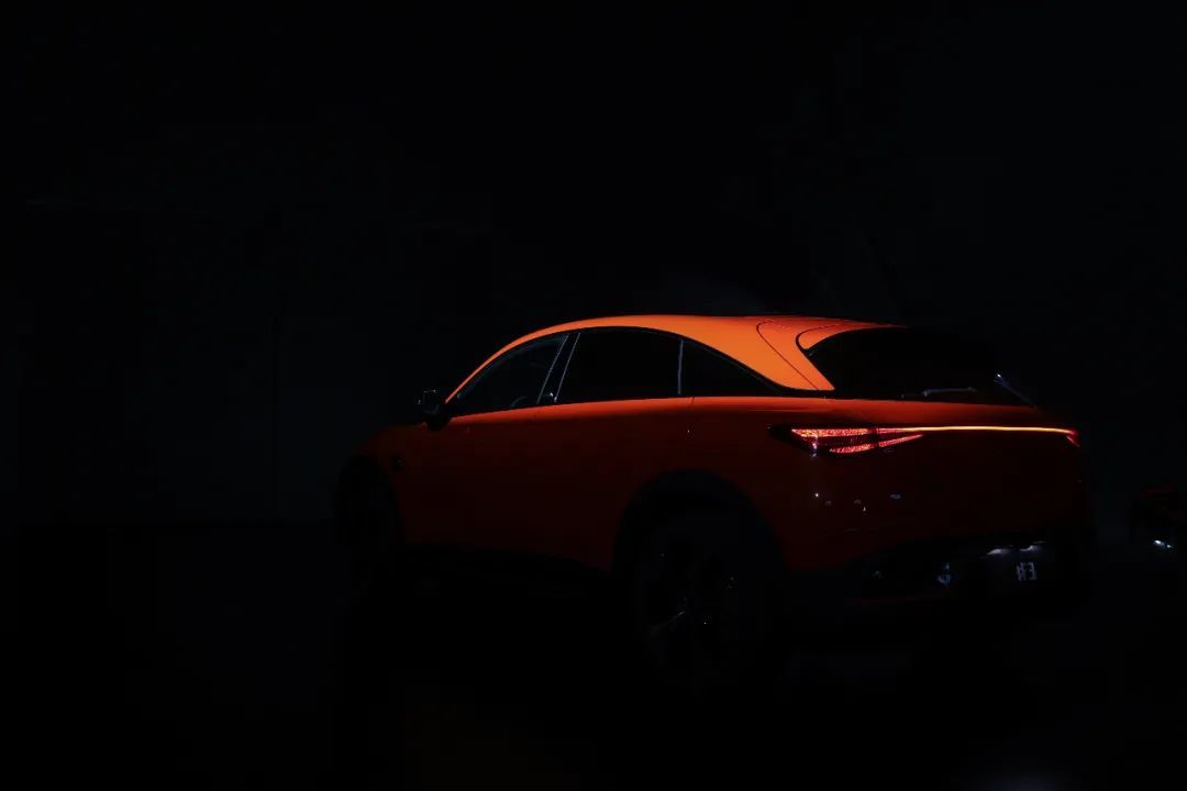 前脸延续了家族式设计风格,赛博光影贯穿式LED矩阵大灯、“鲨鱼鼻”造型、A型宽格栅等,与精灵#1差别不大。不过侧翼发光Logo被移到了前翼子板处,解锁/上锁时点亮,充电时也会呼吸闪烁。