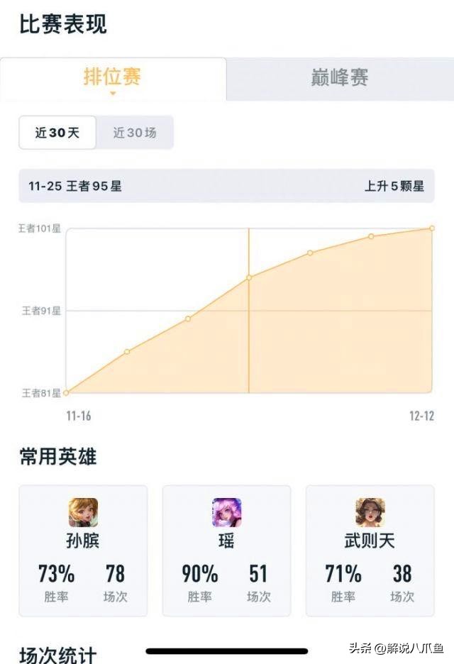 首先英雄战力是由三部分组成的,一是排位赛表现分,二是巅峰赛各分段的上限以及系数分,三是胜场分,这是三大组成部分,当然这里还有临时的巅峰挑战赛,暂时不计入。