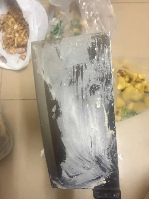 看看,根本洗不掉,接下来才是重点,此时把油抹上去,然后用钢丝球去擦,擦了之后加洗洁精洗,保证完好如初。