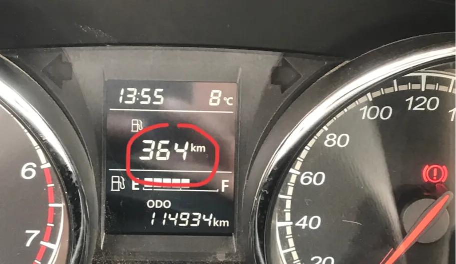 这个表盘里面包括了时间、温度、油格、行驶总里程、可行驶里程数。画圈的就是可行驶364公里,现在油价已经7.4了,加个200块差不多跳到400出头,这个只是理论是可行驶里程和实际是还是有10~20数之差可能有路况天气做车人数等等因素影响。