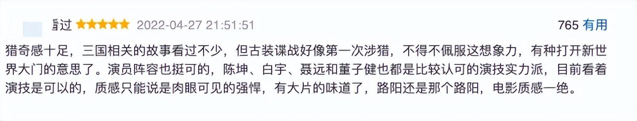 但实际上,有不少看过几集的观众,对这部剧打出了五星评价。这便说明了《风起陇西》的总体品质还是不错的。