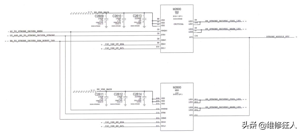 导致的。拆下闪光灯供电芯片M2600,如图所示。