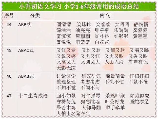 小学成语分类汇总大全图片 小学成语分类汇总大全及解释