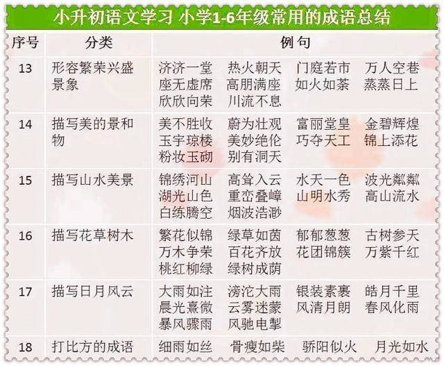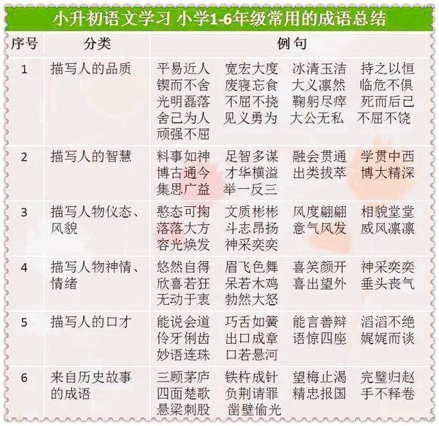 小学语文成语分类大全,给孩子贴墙上多背背,写作再也不怕词穷了