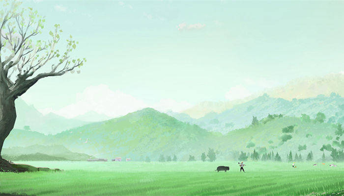 接下来的几句则是写远处江面的景致,江岸两边青草依依,因为是遥看,所以无法看清草的具体样子,眼前只有一片绿色。落笔处,诗人连用三个“绿”,从绿到透绿,最后是透黛绿,一气呵成,并不显累赘。
