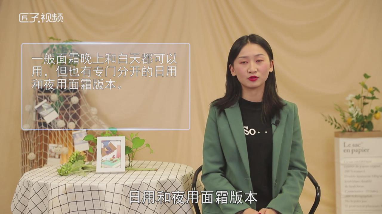 一般面霜晚上和白天都可以用,但也有专门分开的日用和夜用面霜版本。我们在清洁肌肤后,会使用水乳来对肌肤进行保湿。还会使用精华来进行功效性的美白或者抗衰老。