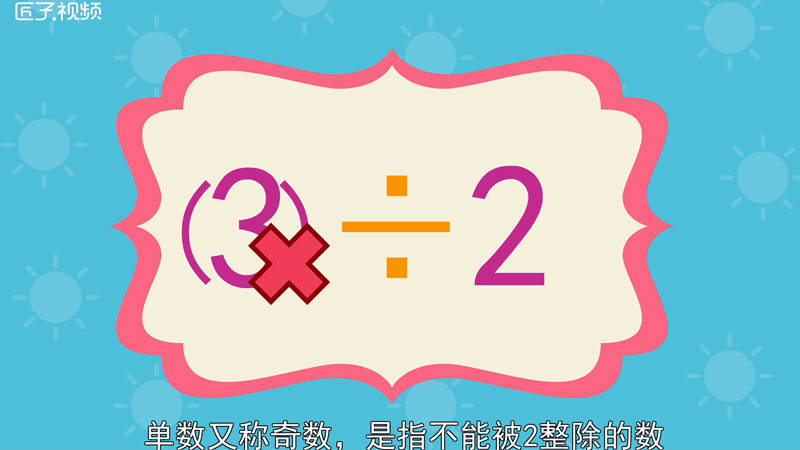 单数又称奇数,是指不能被2整除的数,如1、 3、5、7、9……。双数又称偶数,是指能被2整除的数,如2、4、6、8、10……。