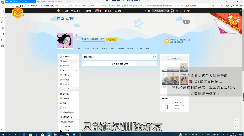 当然由于隐私保护等原因,我们只能看到有多个人关心我,并不能看到这个人到底是谁,如果想知道具体是谁,只能通过删除好友,观察关心我的人,人数增减来确定了。