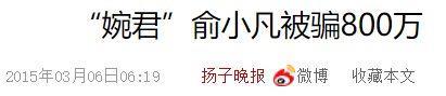 2015年3月,一则“俞小凡被骗800万”的新闻又把她推上了热搜。