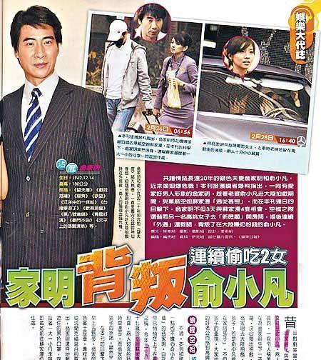 2009年3月初,正在上海拍摄《谁懂女人心》的俞小凡,收到了海峡对岸丈夫“偷食两女”的劲爆大瓜。