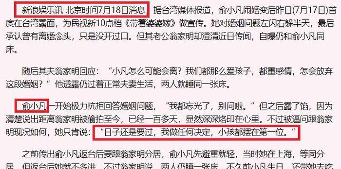 事情发生后,翁家明一直站在俞小凡身后,给予她支持,最终共同挺过难关。