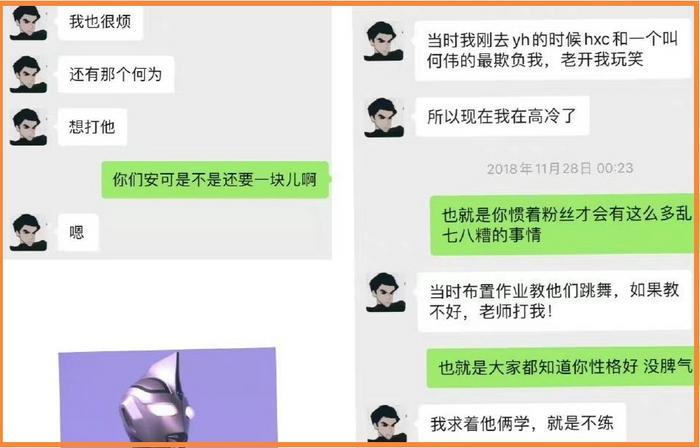 而后,她又爆出当时与丁泽仁的聊天记录,其中有很多丁泽仁对队友和队友粉丝表达不满的内容。比如他说自己要和毕雯珺粉丝势不两立、比如朱正廷粉丝瞧不起他、再比如说何伟&黄新淳总欺负他,还不练舞;