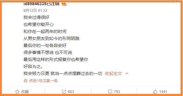 9月12日一位名为“id85846335已注销”的网友称自己与丁泽仁恋爱两年,如今已分手。之所以会选择公开出来,一方面是丁泽仁和自己在一起时,还与其他异性暧昧;另一方面,她称这段恋情里自己有很多难言之隐,疑似受了委屈。
