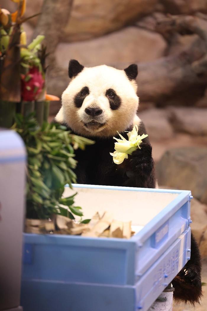 据长隆熊猫保育专家青姐介绍,一方水土养一方大熊猫,作为从小在广东长大的熊猫,三胞胎的美食是一刻都不能停的。除了生日礼的特色丰容外,每天下午三点三工作人员将粤式下午茶准时送上,它们在长隆享受“老广”大熊猫舒服惬意的生活。
