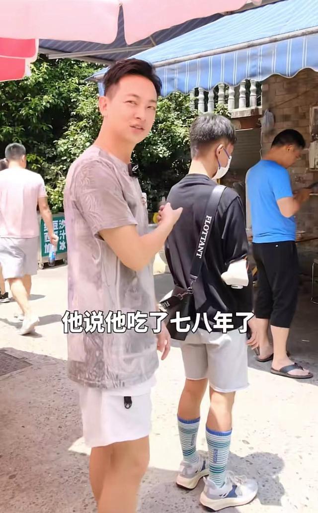 爱国港星梁竞徽定居内地,排队吃苍蝇小馆无人识,自来熟融入居民