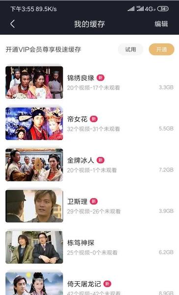 我从初中那会儿,差不多20年前(暴露年龄的话),开始迷恋TVB,90年代,我觉得是TVB的鼎盛时期。我初步估算我少说看了300多部(有很多都看10遍以上)。我从最早还是租光碟看,一般每部剧集结尾,会介绍新片,就这样一直一直看下去。后来网络比较方便了,就在优酷上看。优酷是某个时间段,是这些剧集免费,过一阵子,可能换另一批剧集免费,我在它免费的时候,把想看的先重温一遍,特别喜欢的,就缓存到手机上。以下是我现在的手机缓存截图。