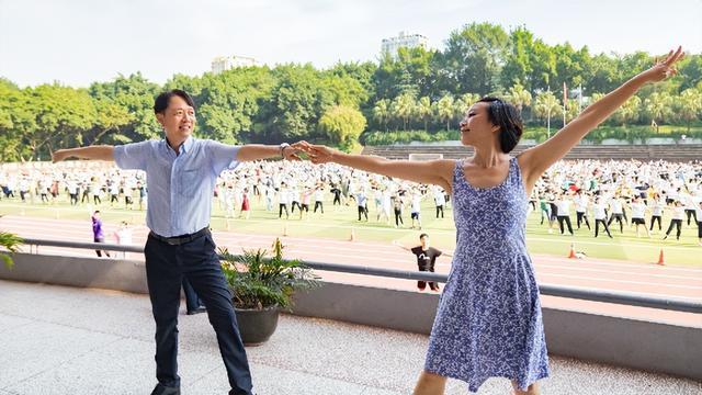 而这也不是田校长第一次当领操员,之前还有踢踏舞、武术操、健身舞等。校长和老师们都以不同方式参与跳操,让师生在运动中相处交流。