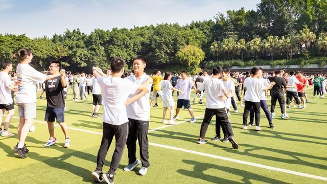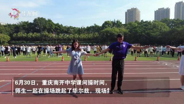 6月30日上午,重庆南开中学课间操时间,伴随着悠扬的音乐响起,师生一起在操场跳起了华尔兹,现场氛围十分愉悦浪漫。