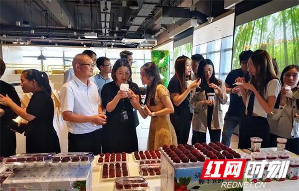 果大如乒乓球、色泽乌黑发亮、入口清甜多汁的靖州杨梅和甘甜可口的杨梅汁、杨梅酒成为“团宠”,不仅媒体争相报道,40名香港客商品尝过后也赞不绝口,连连表达合作意向。当场即有客商与靖州喜乐购电子商务有限公司签订产销合同,合作开拓靖州杨梅香港市场。