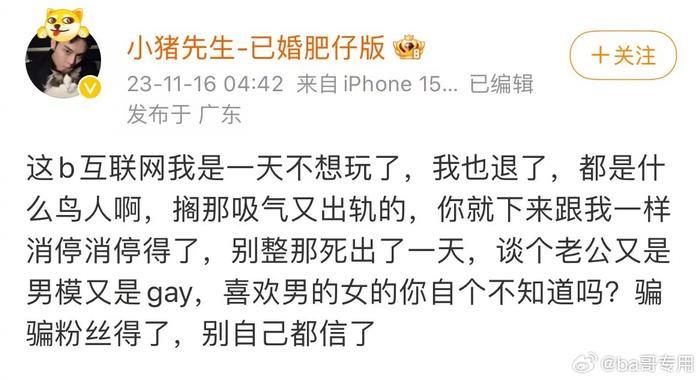 此外,小猪先生说韩安冉的现任老公宋浩然是gay,说韩安冉吸X气、出轨(图四)