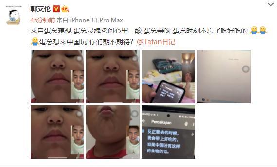 不得不说,郭艾伦和印尼小胖的友谊确实令人羡慕,印尼小胖达蛋通过极其可爱的表情包被大家认识,郭艾伦也很早就就和他熟识。当印尼小胖达蛋开通中文的社交媒体之后,郭艾伦成为他第一个关注的真人,为此激动的郭艾伦甚至还单独发动态进行“庆祝”。包括范冰冰等人,都和印尼小胖达蛋很熟。