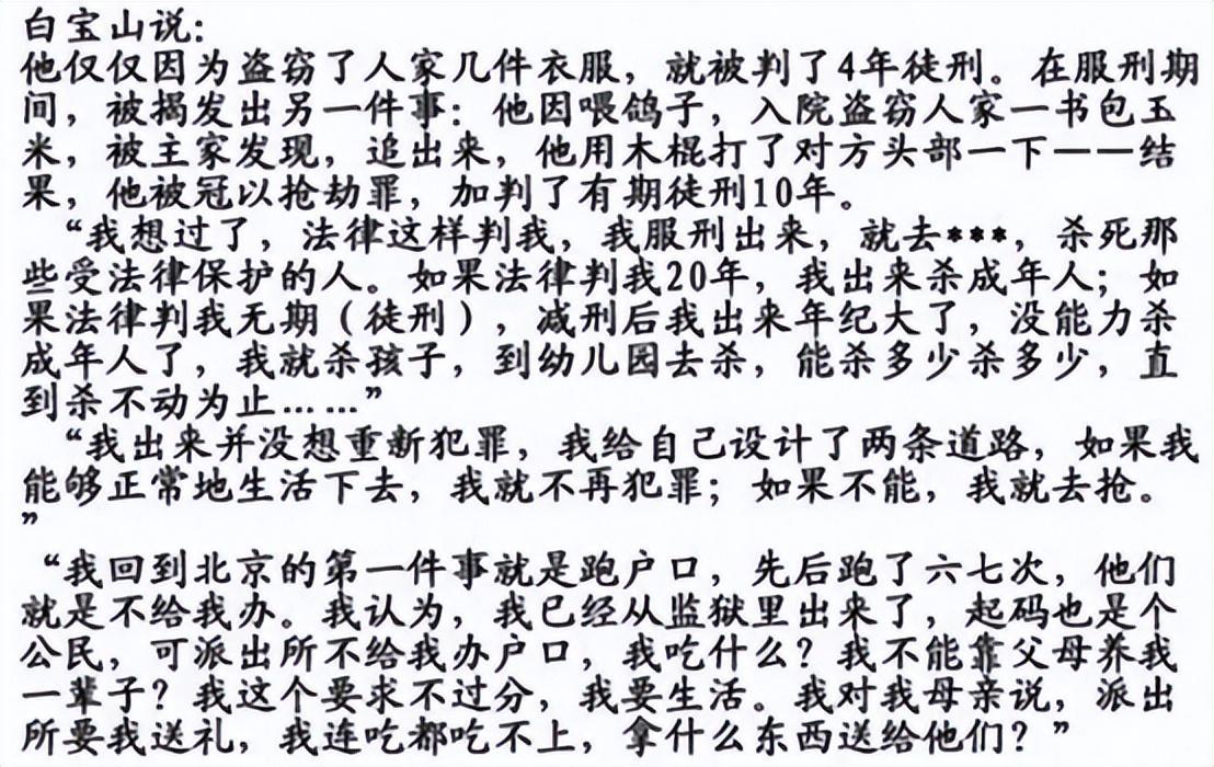 这让白宝山觉得日子根本过不下去,他总不能靠老母亲养一辈子。因为在社会上处处碰壁,白宝山选择了一条抢劫犯罪的道路。