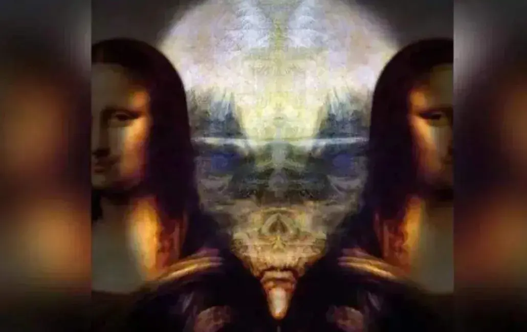 人们将蒙娜丽莎的画像镜像后,把两幅画拼接在一起,中线上就会出现一张怪脸。这张脸,大眼、长鼻、小口,头戴帽子,肩上披着披风,看起来像一位外星人祭祀。为了使外星人的影像看起来更清晰,他们曾用数字技术加强了图像的色彩效果;阴影下外星人的脸更加的明显了。
