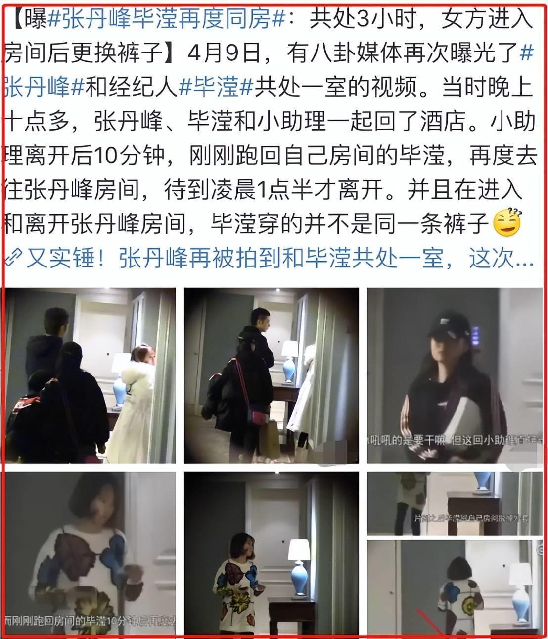 有狗仔嗅到其中的味道,在狗仔不懈努力下,终于在2018年张丹峰与毕滢在酒店房间长达三个多小时,开始双方矢口否认,随后视频被公布。