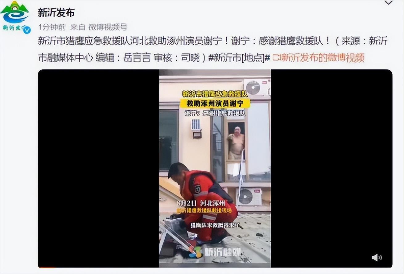 与此同时,新沂市猎鹰应急救援队官方回应,发声谢宁在涿州失联一事,称“编剧九年”在网上发布救援信息后,救援队非常重视,第一时间定位谢宁家地址,实施了救援行动,目前谢宁一家脱险。