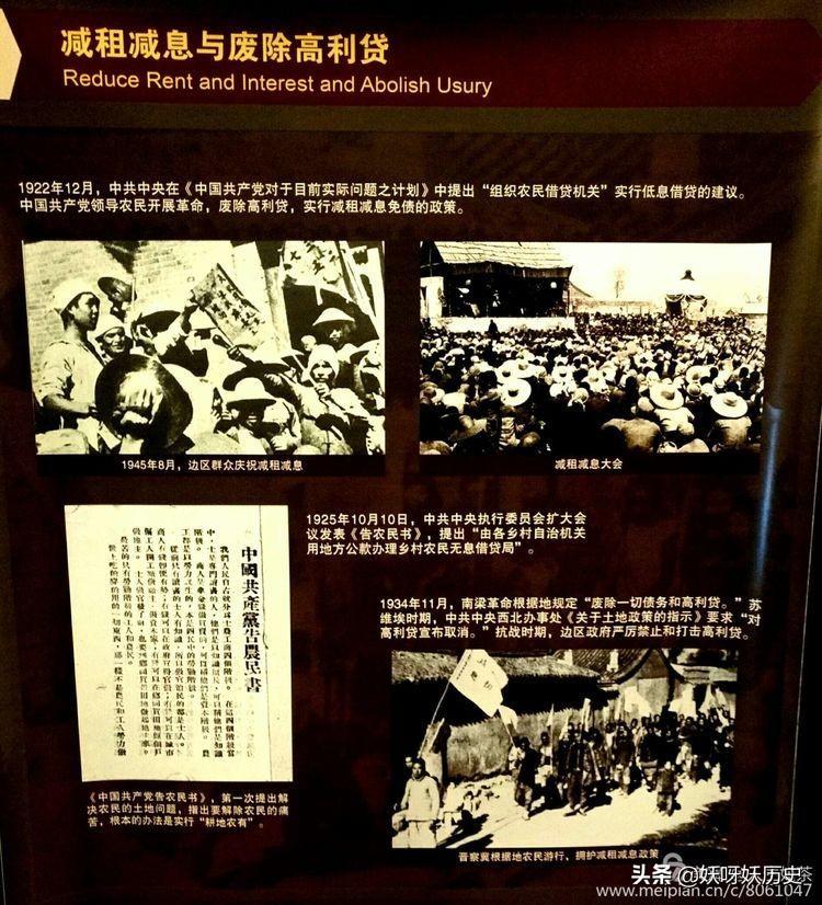 1922年12月,中共中央在《中国共产党对于目前实际问题之计划》中提到“组织农民借贷机关”实行低息借贷的建议。中国共产党领导农民开展革命,废除高利贷,实行减租减息免债的政策。