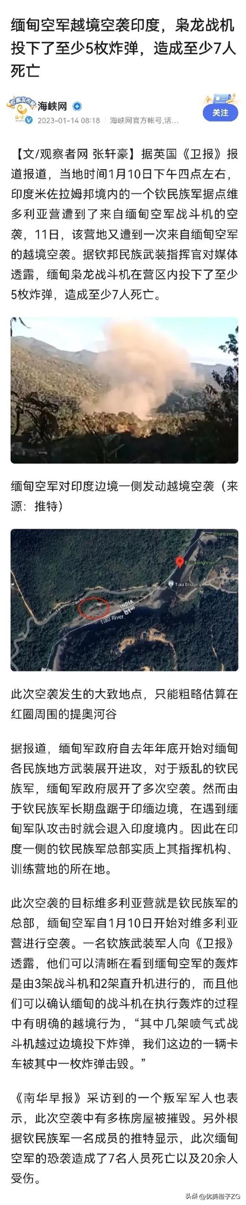 这是发生在印度米佐拉姆邦,所以真正跨境空袭的其实是缅甸。