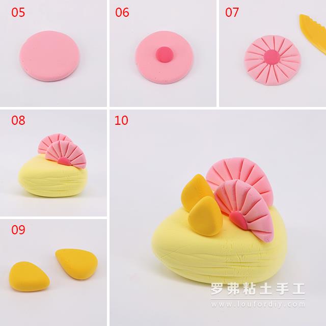 罗弗超轻粘土黄桃蛋糕制作图解教程